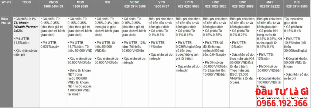 Dưới đây là bảng so sánh mức phí giao dịch cổ phiếu tại các công ty chứng khoán.